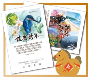 毎年好評、アド・クリークオリジナルデザインの年賀状。ふるさと糸魚川の美しい景色を切り取った写真や、国・県・市の石“ヒスイ”を使ったデザインなど盛りだくさんです。 ■年賀状宛名印刷 今年届いた年賀状をお持ちください ①アド