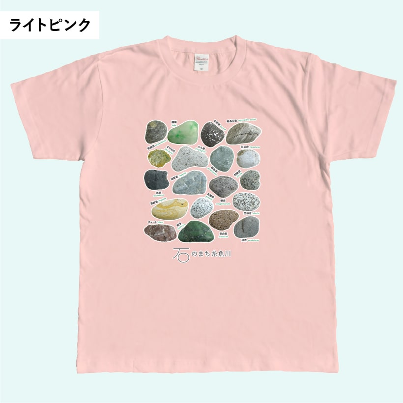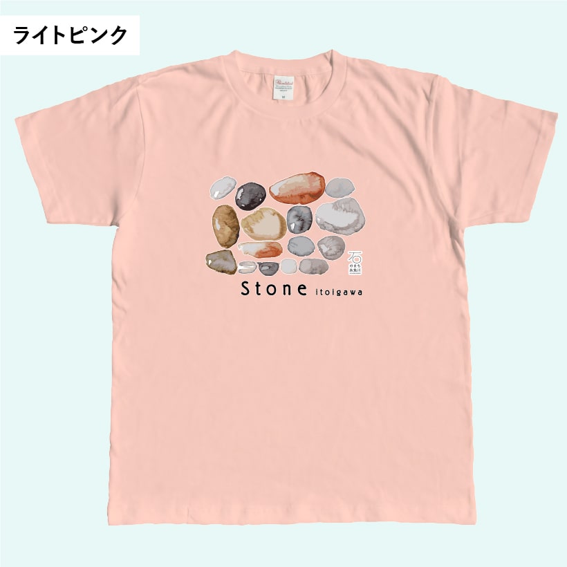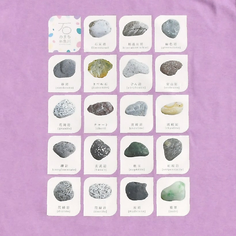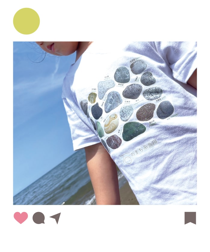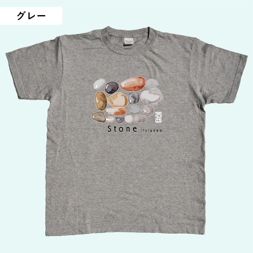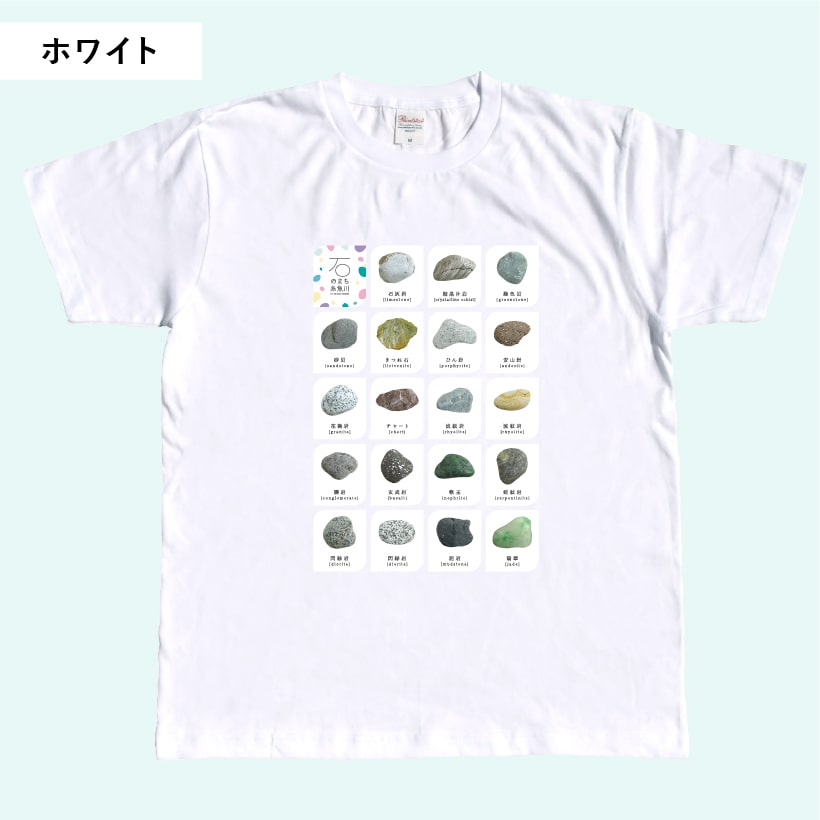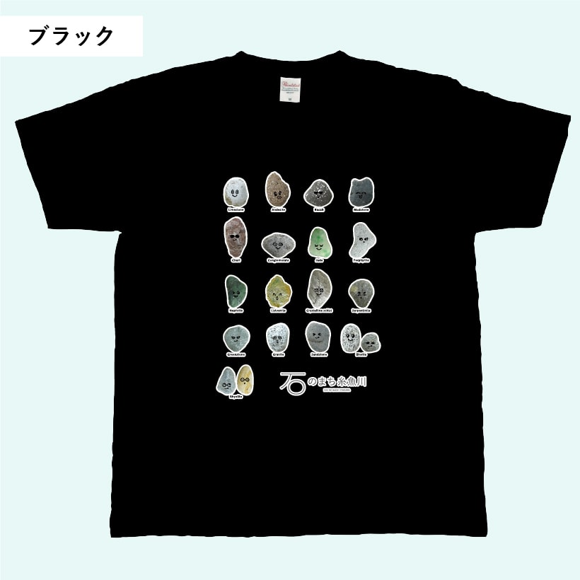 見つけた石はどれも大切な宝物。糸魚川で採れる石たちをそっとTシャツに閉じ込めました。エレガントに石を着こなしたいあなたにはコレ!