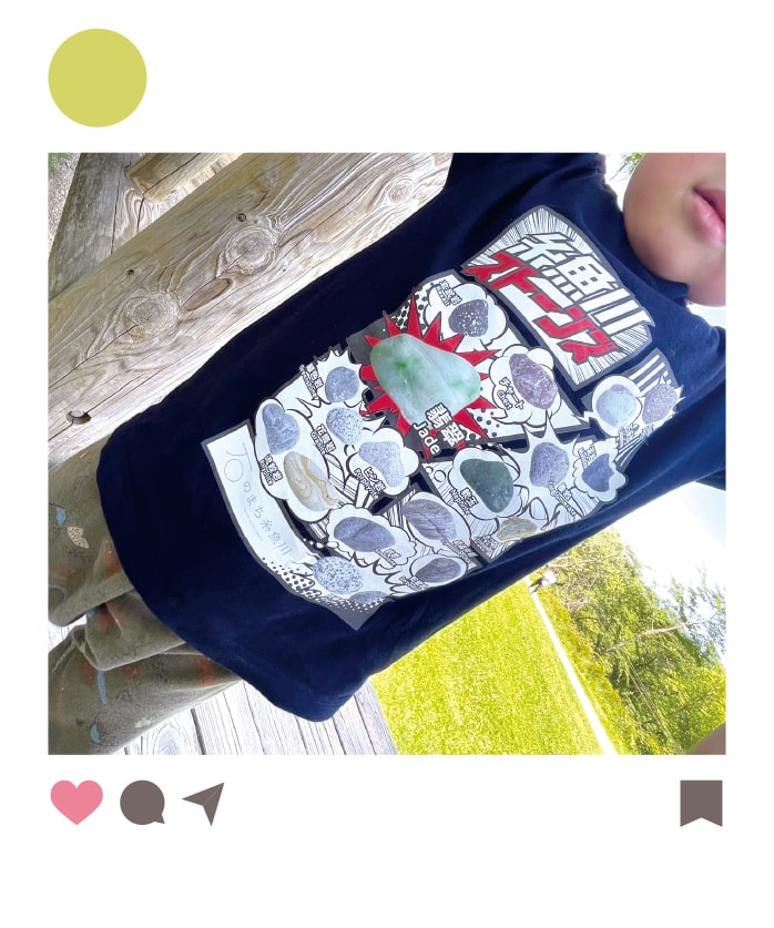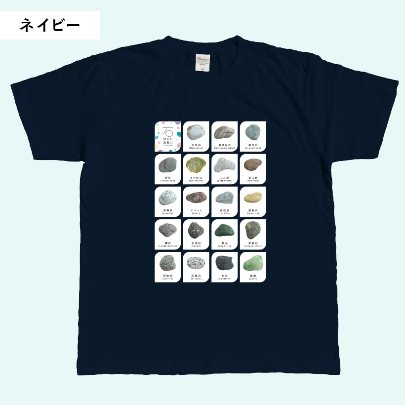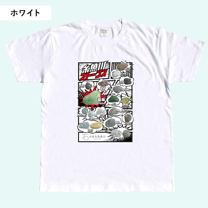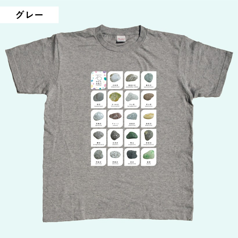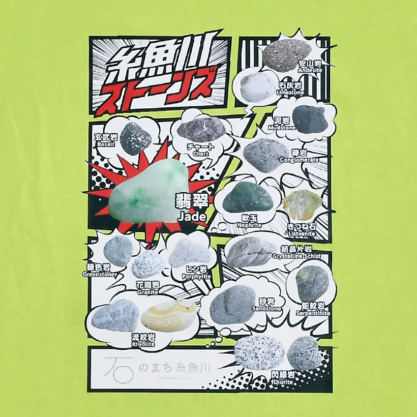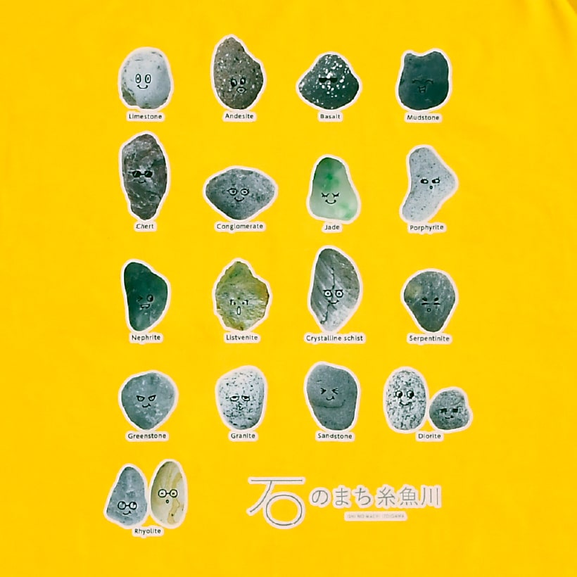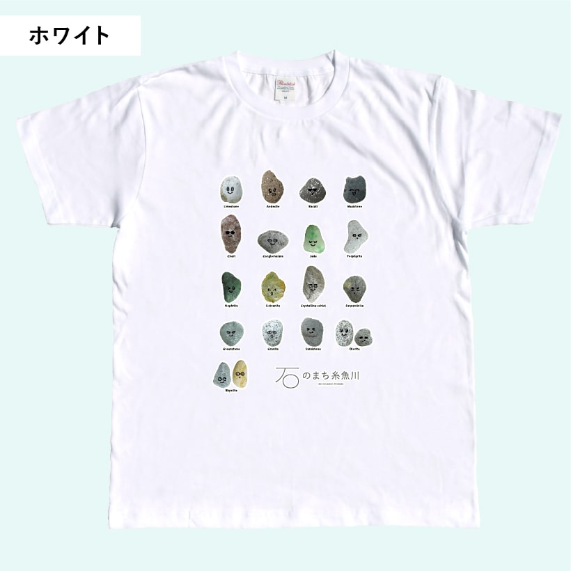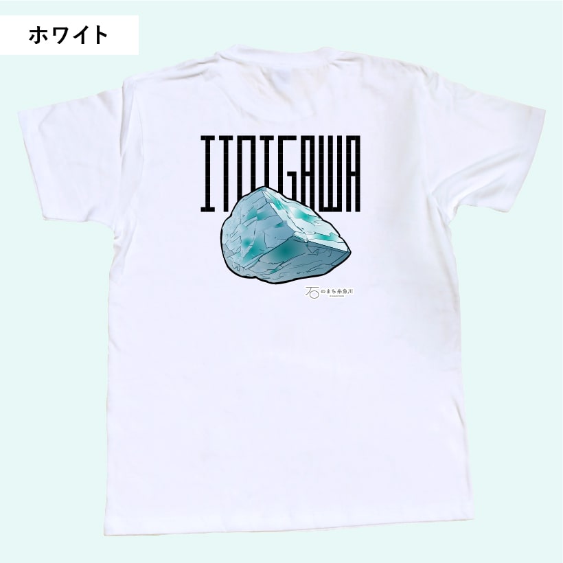 見つけた石はどれも大切な宝物。糸魚川で採れる石たちをそっとTシャツに閉じ込めました。エレガントに石を着こなしたいあなたにはコレ!