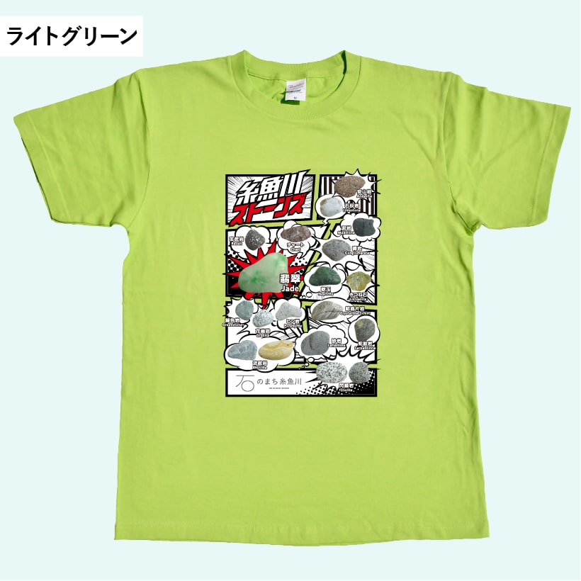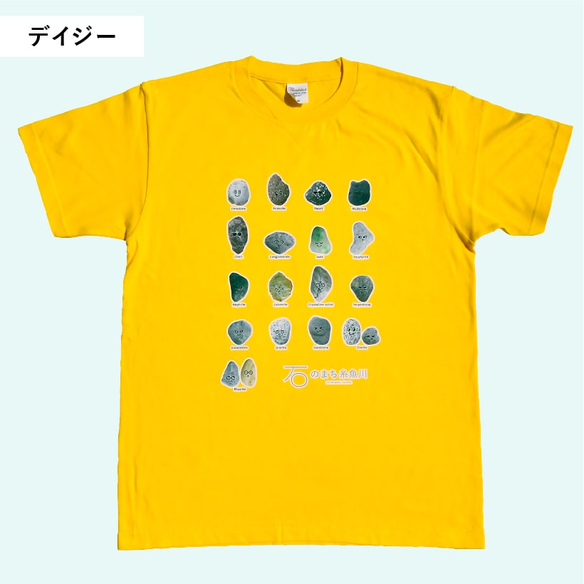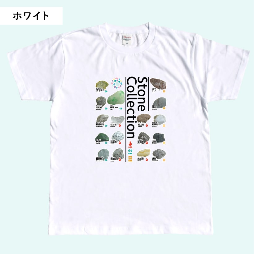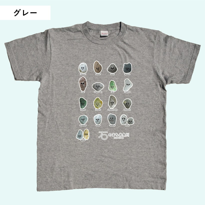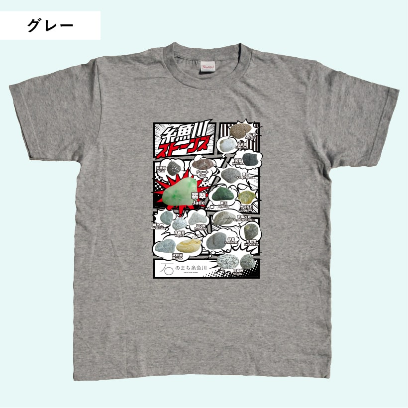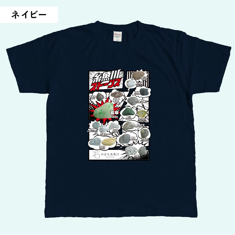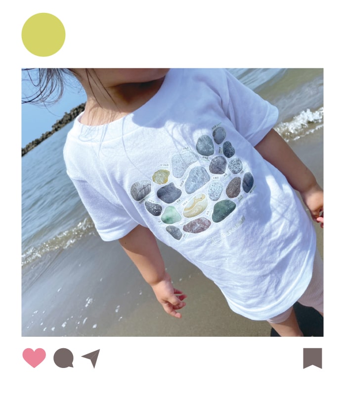 見つけた石はどれも大切な宝物。糸魚川で採れる石たちをそっとTシャツに閉じ込めました。エレガントに石を着こなしたいあなたにはコレ!