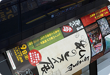会社の店舗、顔とも言われる看板やのぼりのほか、インクジェットのシート、カッティングシートなど、ありとあらゆるデザインと施工をトータルでお任せください。