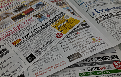 紙面の下段には非営利目的の地域情報欄を設け、無料で掲載しています。
